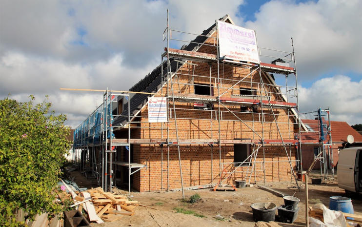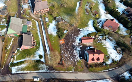 der hier 3 Reihenhäuser baut. Das alte Gebäude mit diversen Nebengebäuden wurde