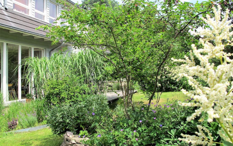 diversen Nebengebäuden wie Gartenhaus oder Doppelgarage. Dieses Haus wird durch die